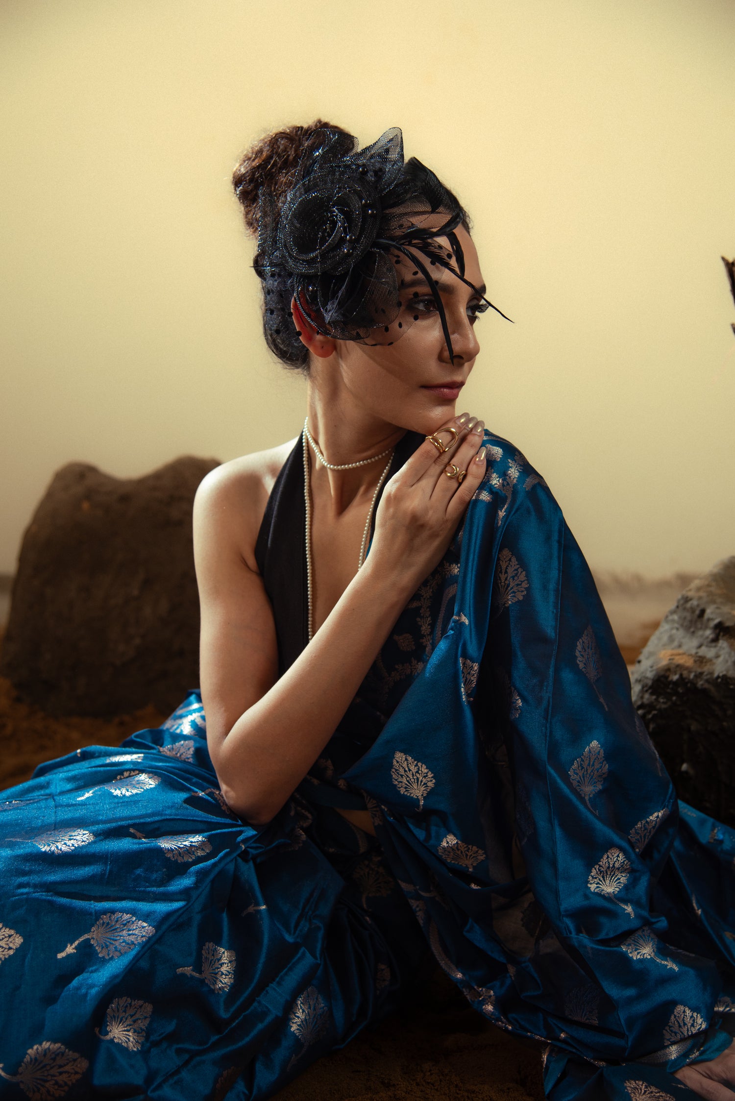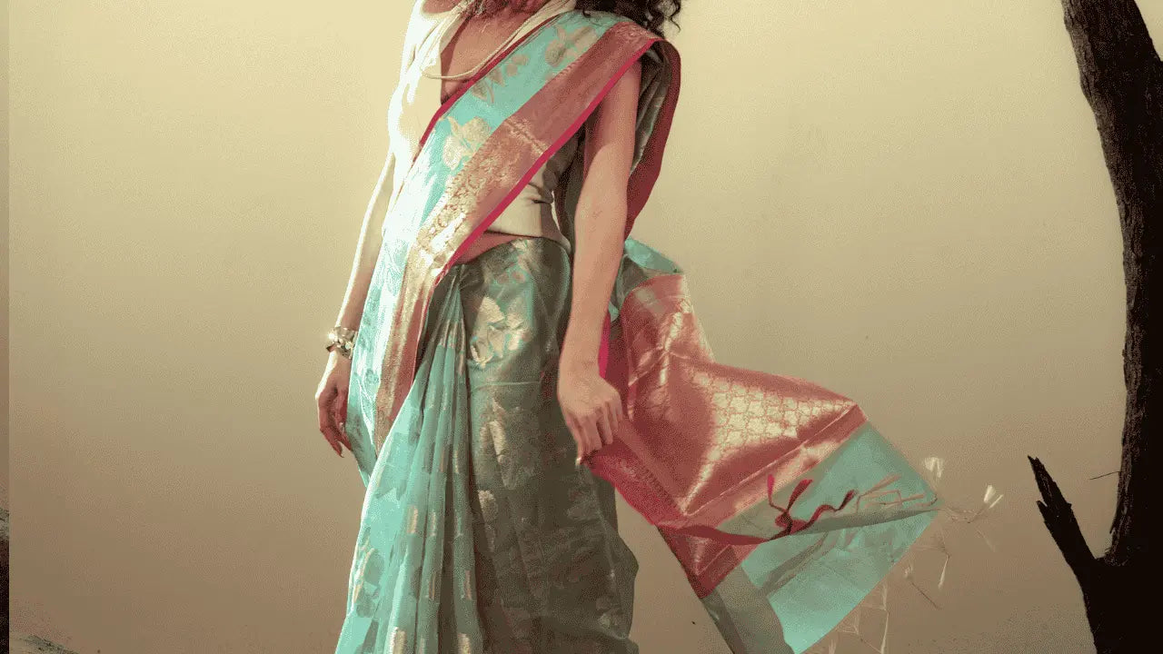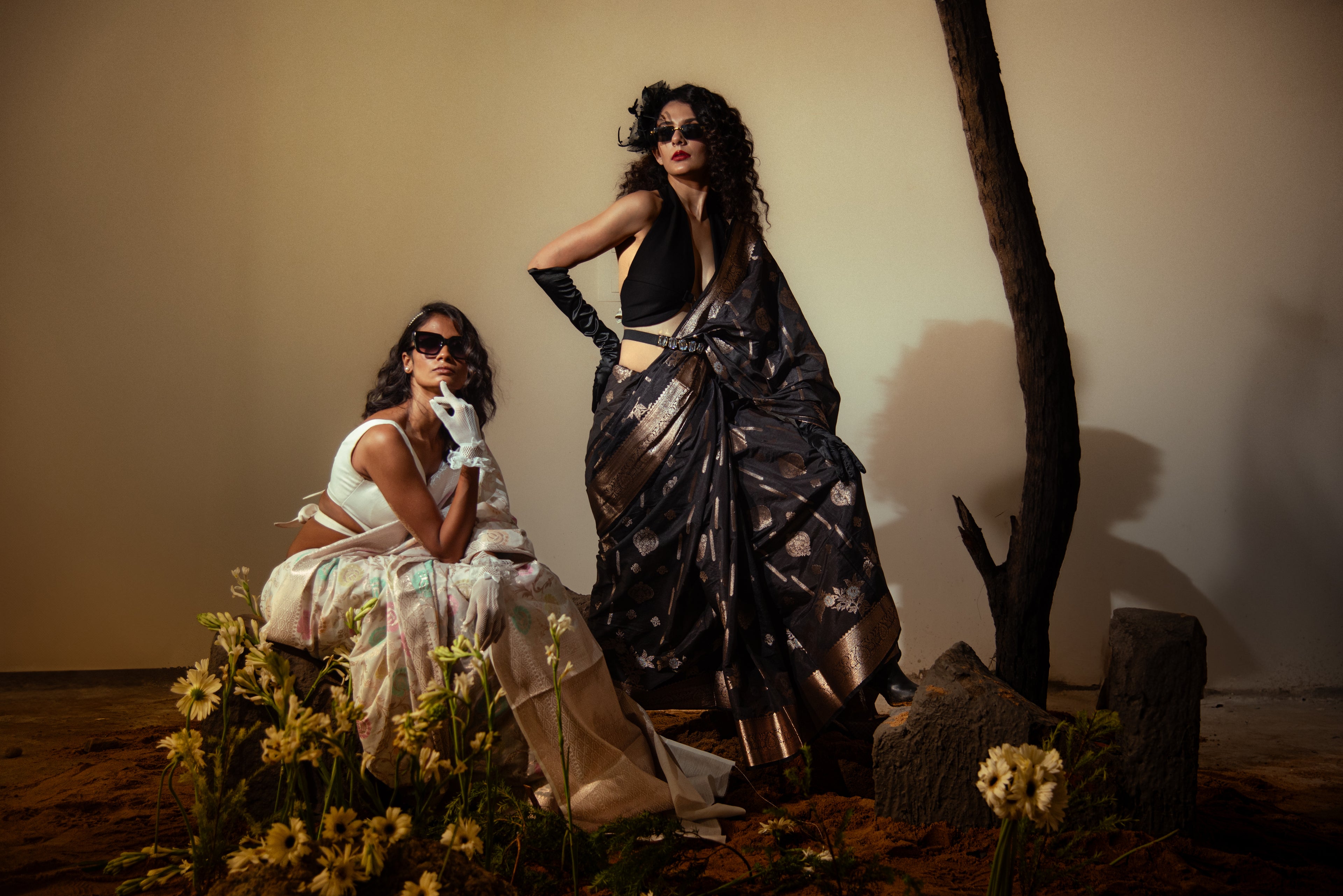Danyah Banaras Cotton Linen Silk Pre Draped Saree